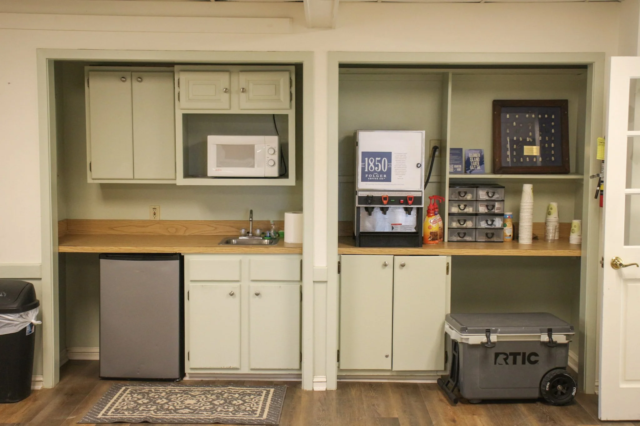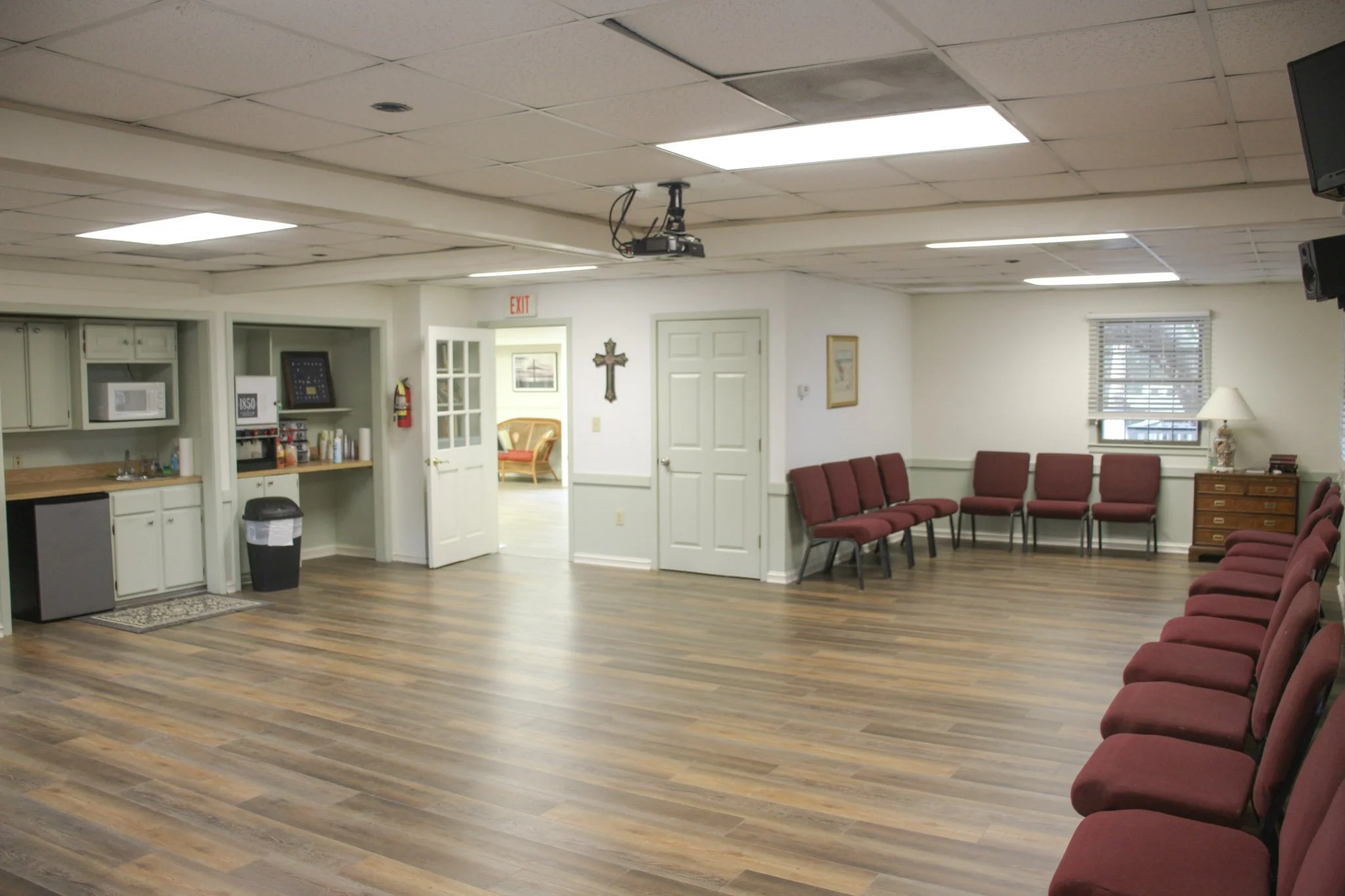 The Prayer Center provides space for roughly 20-25 to gather together with access to a small kneeling prayer room.
