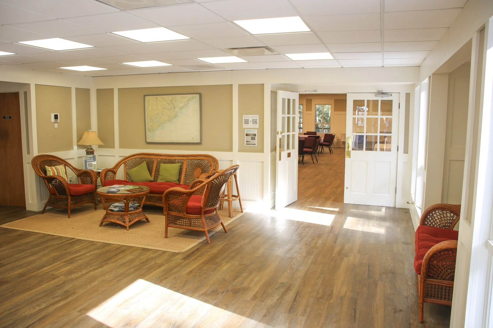 This informal gathering place seats up to 50 in a climate-controlled room near the Rec Hall and the beach.