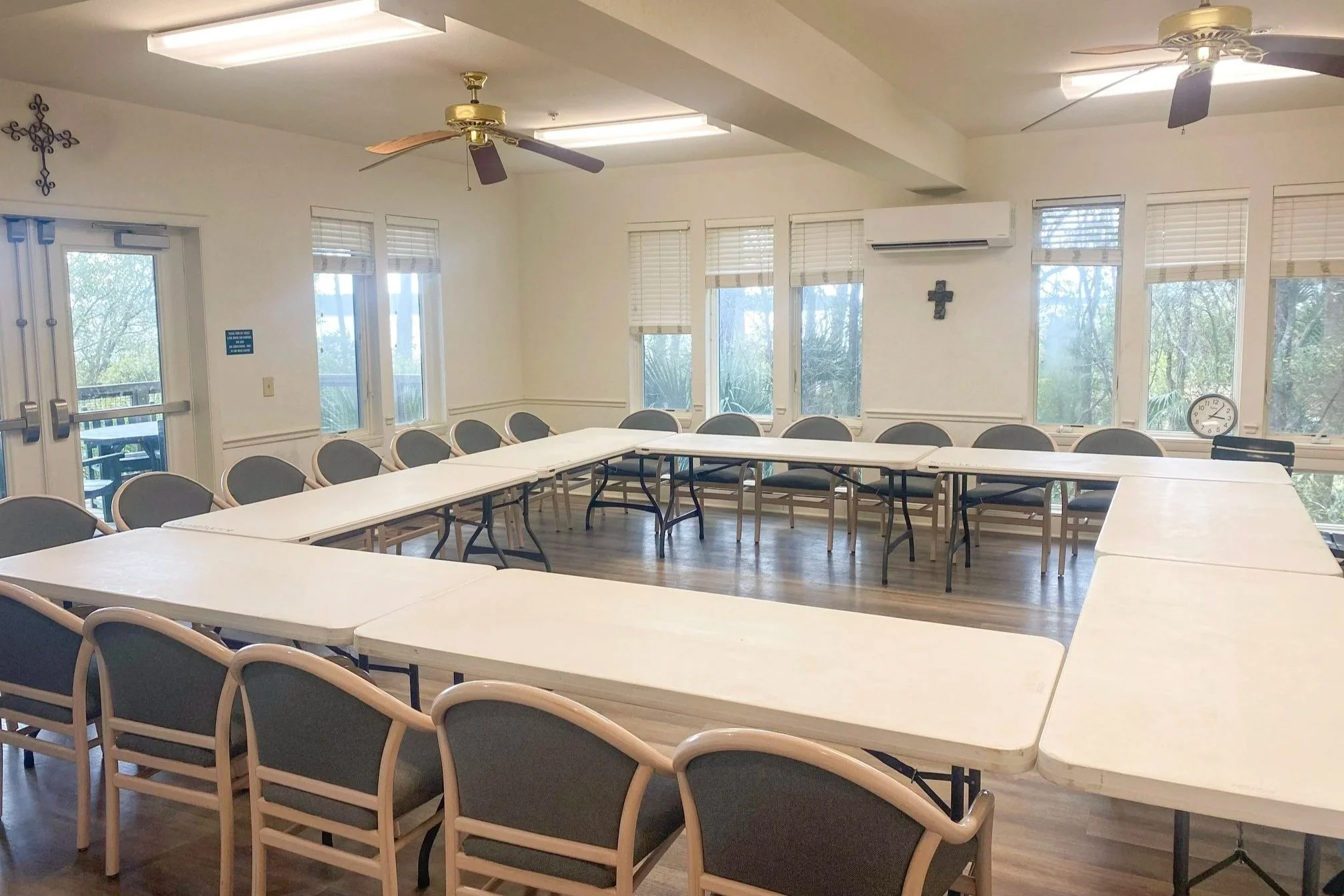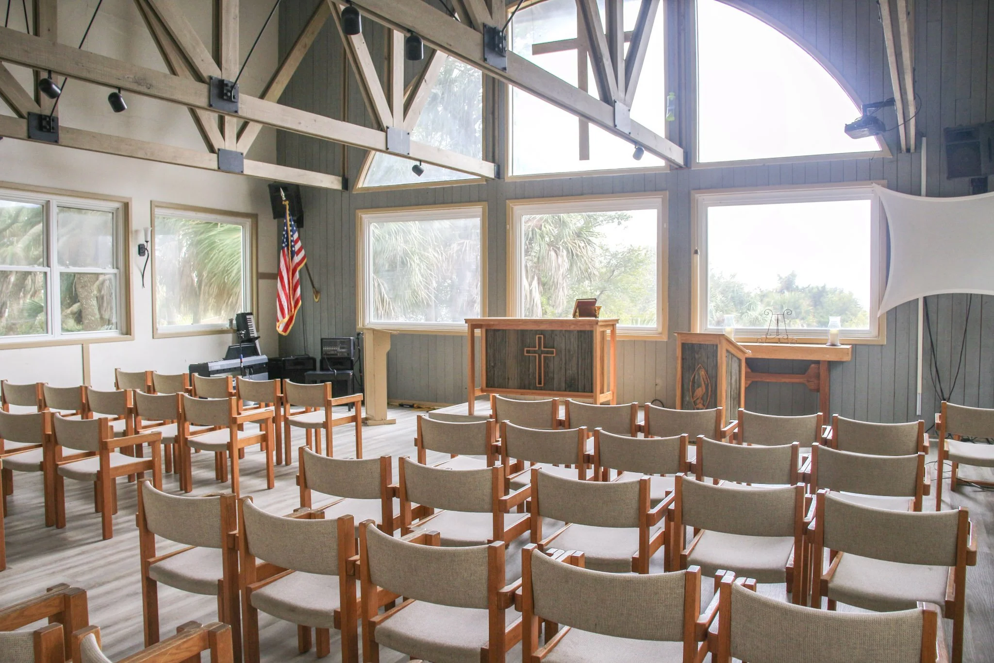 Located in the dunes off the beach, Chapel of the Dunes is beautiful at sunset and for an outdoor worship experience. It is approximately a half-mile walk north up the beach from the middle of the conference center. Seats up to 40 on wooden benches.