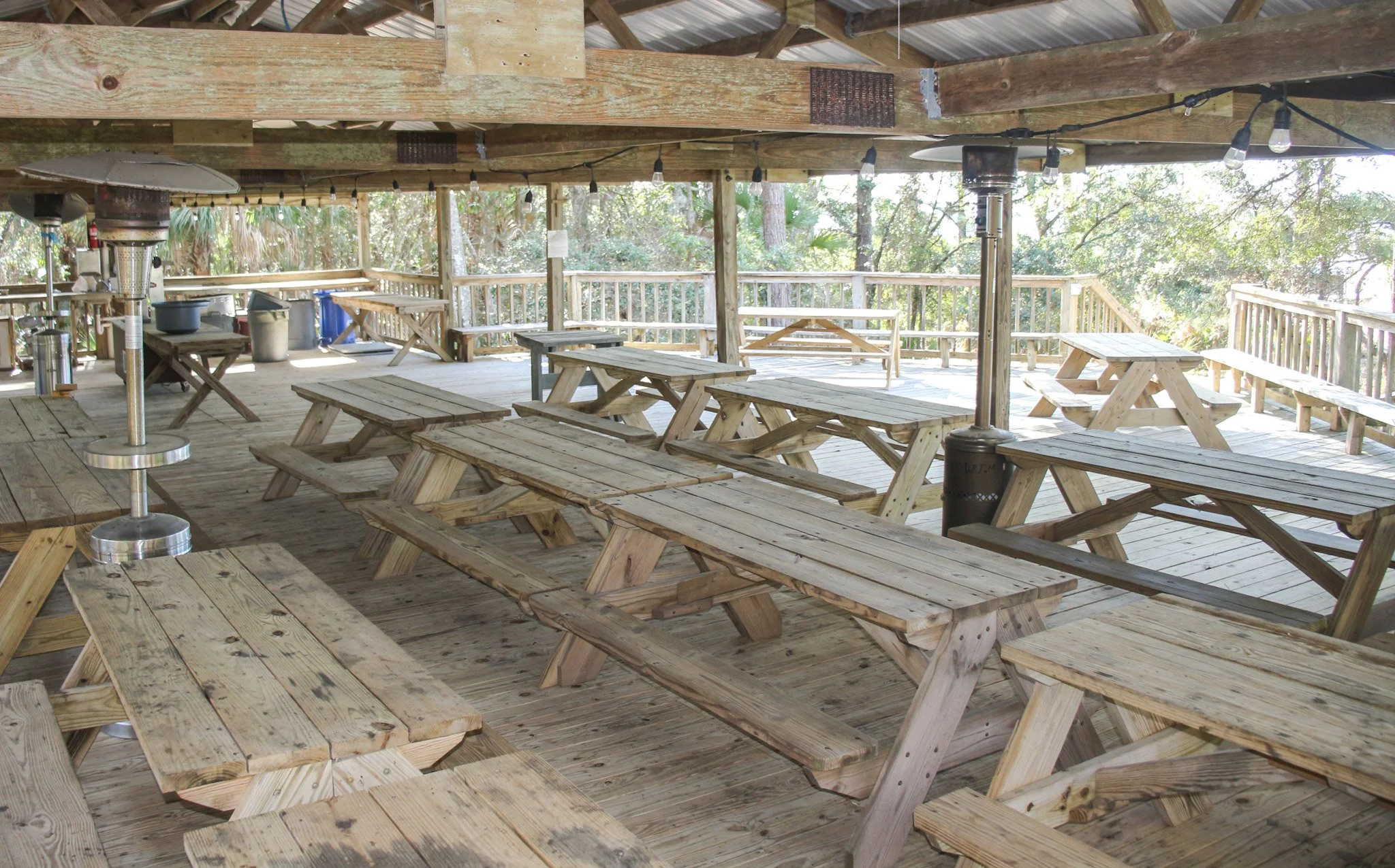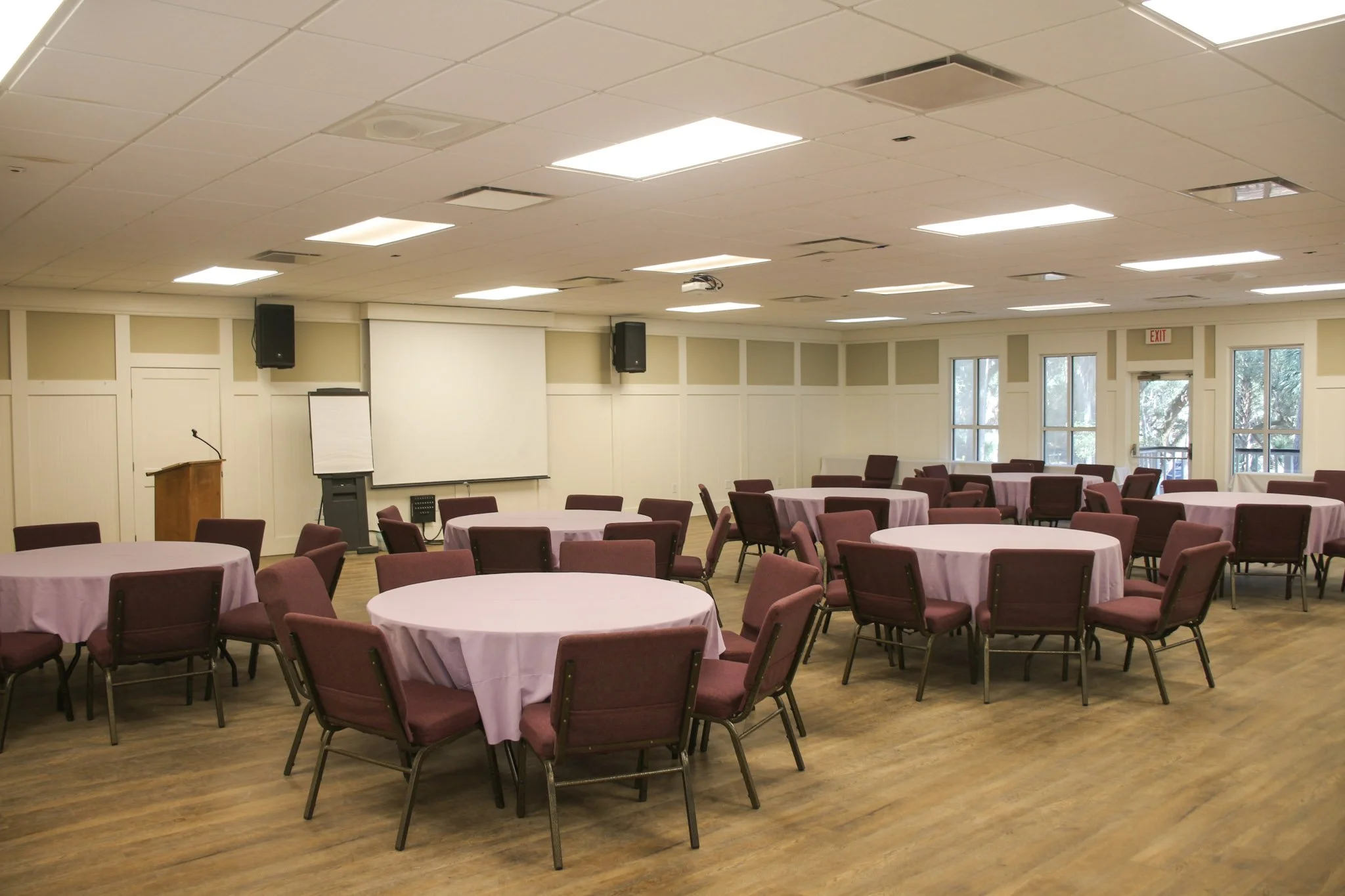 Wonderful beach setting. Informal, enclosed, open-air design includes a stage and exposed rafters. Perfect for loud, noisy activities and youth. Comfortably seats 75 to 100.